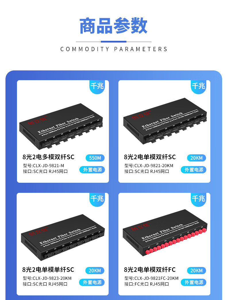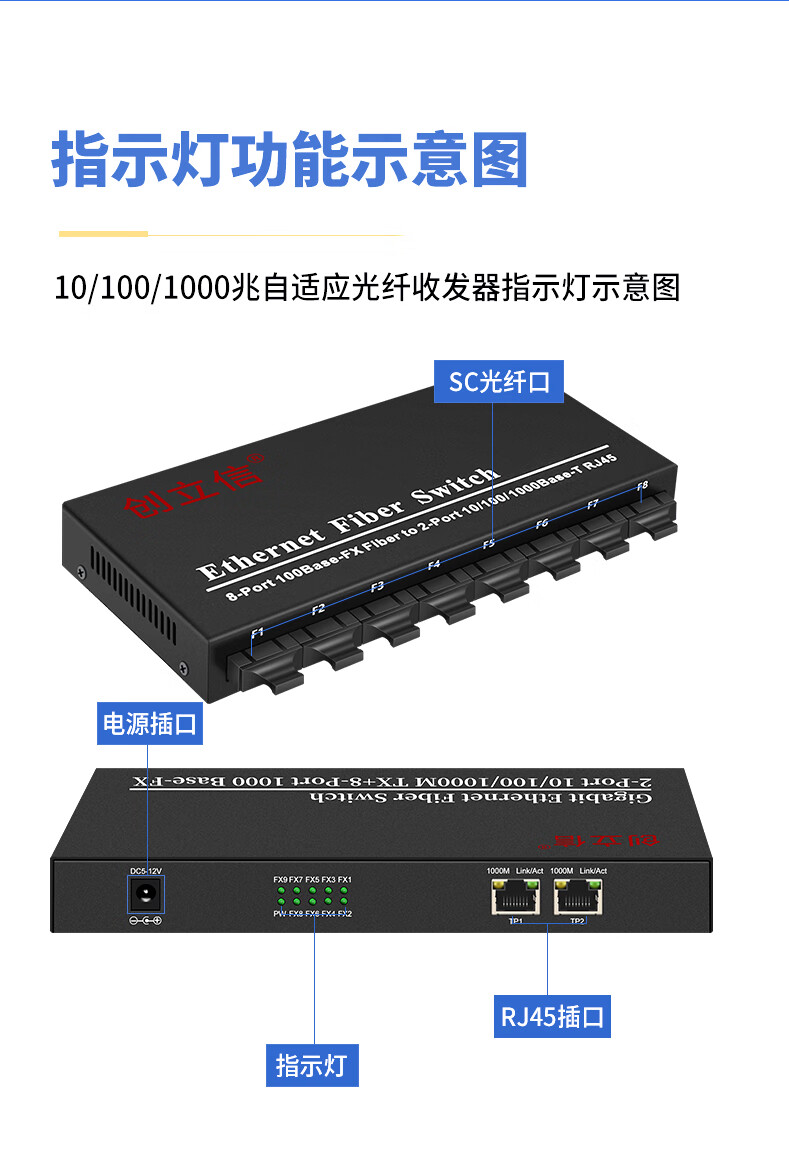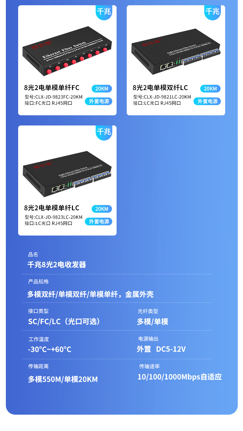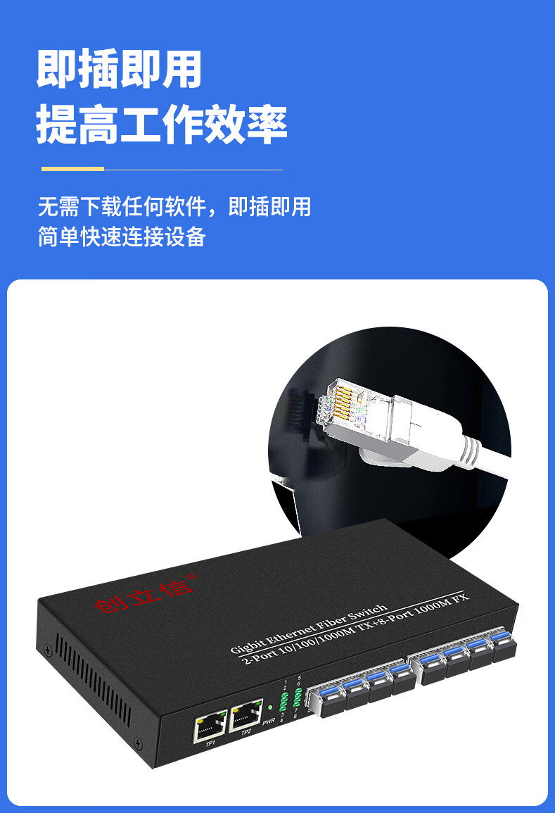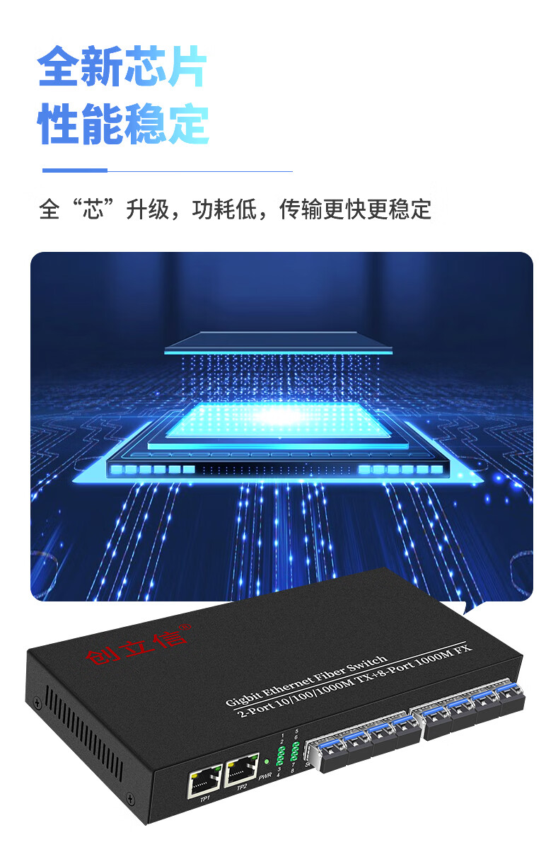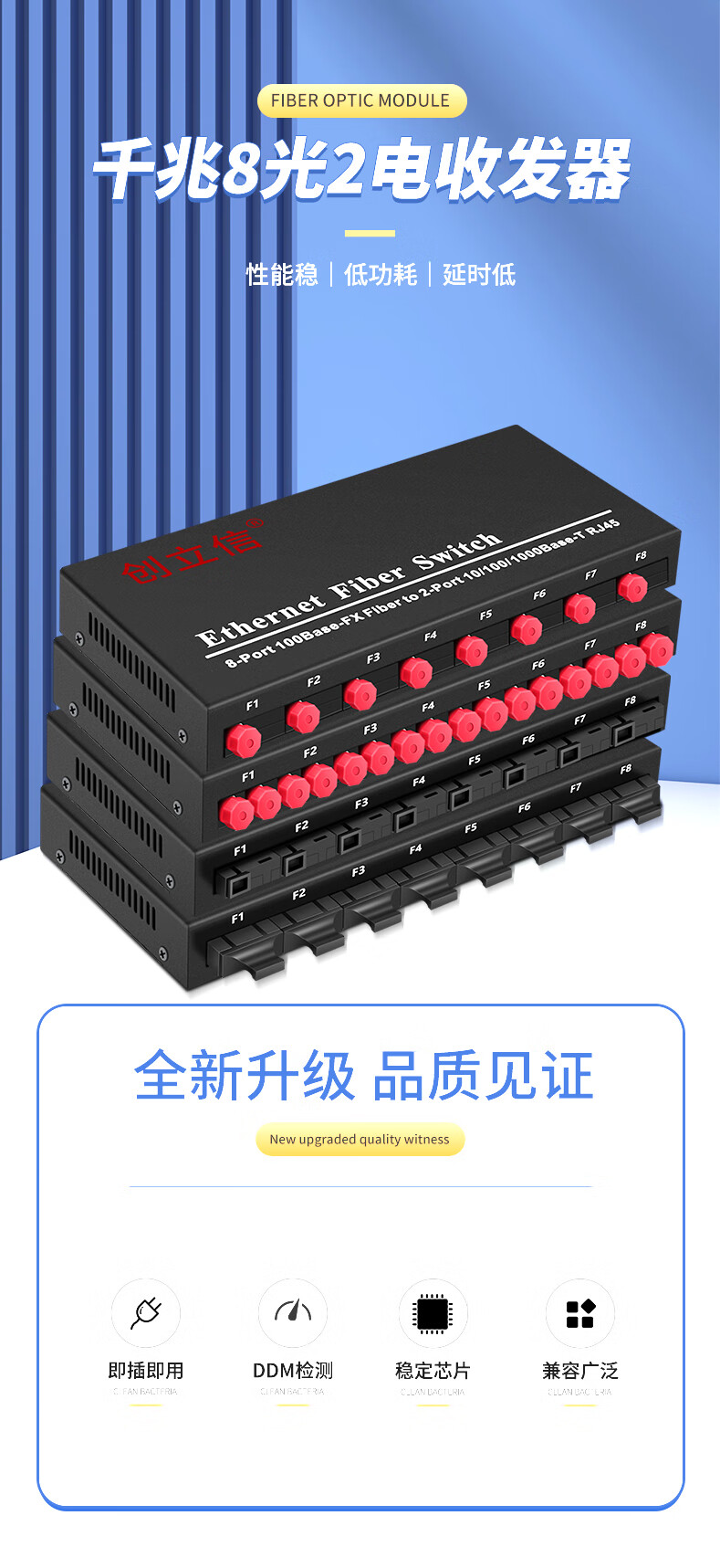 创立信 光纤收发器 光电转换器 网络光端机 千兆8光2电多模双纤SC外电 1台