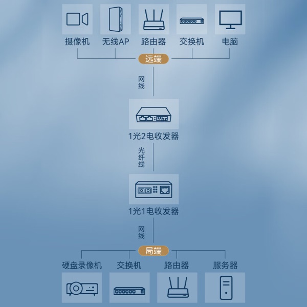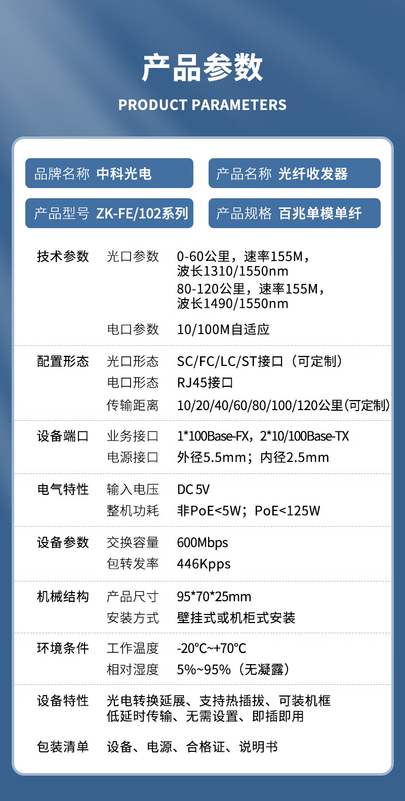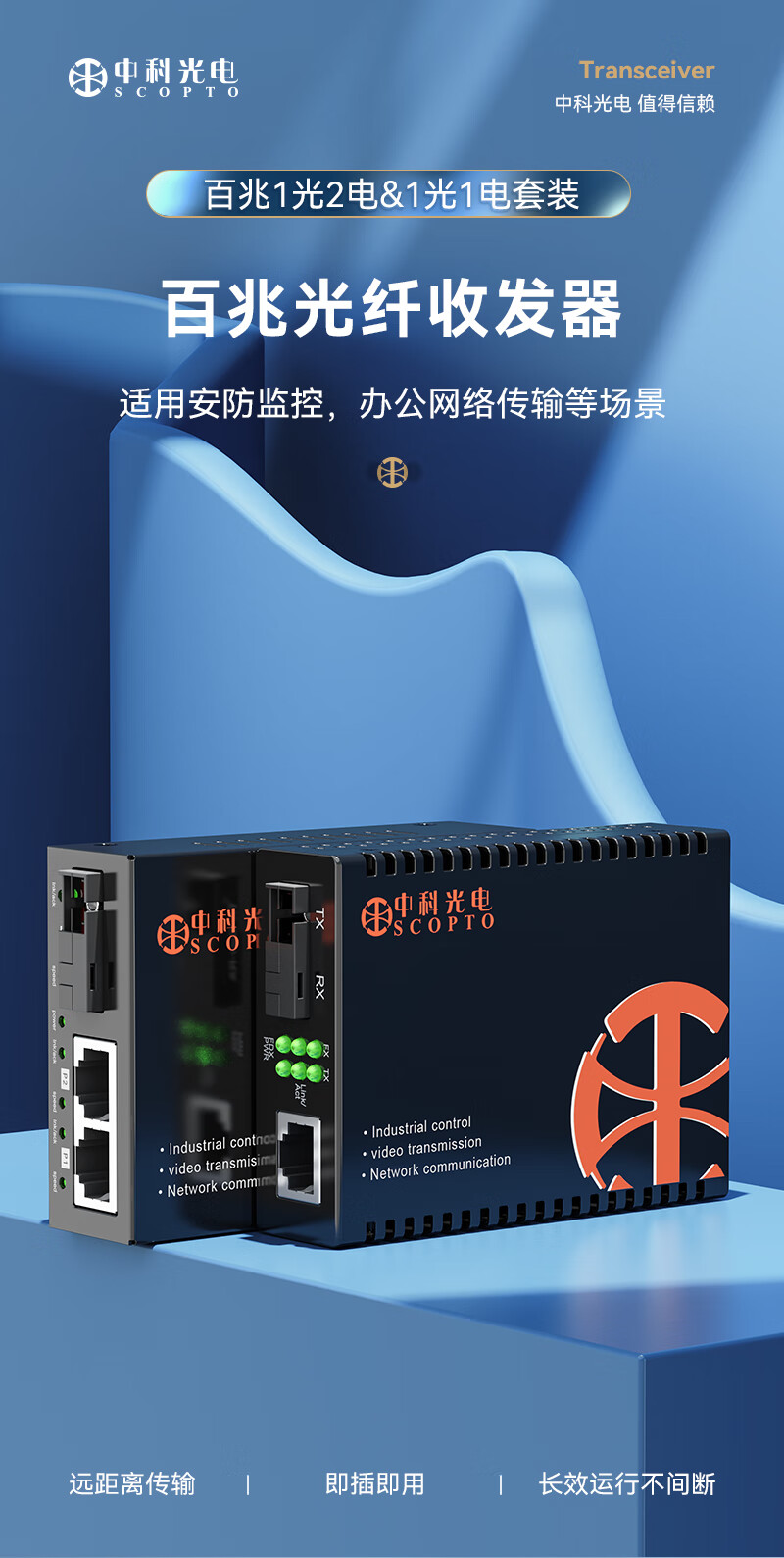 中科光电 百兆单模单纤光纤收发器 光电转换器 1光2电+1光1电
