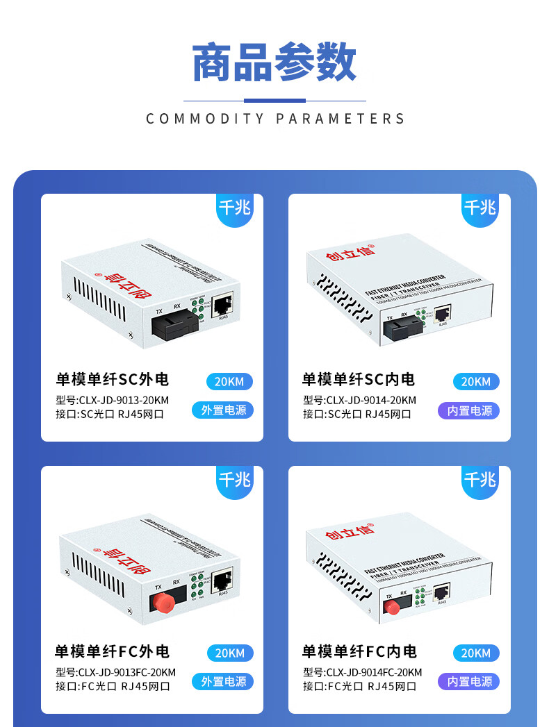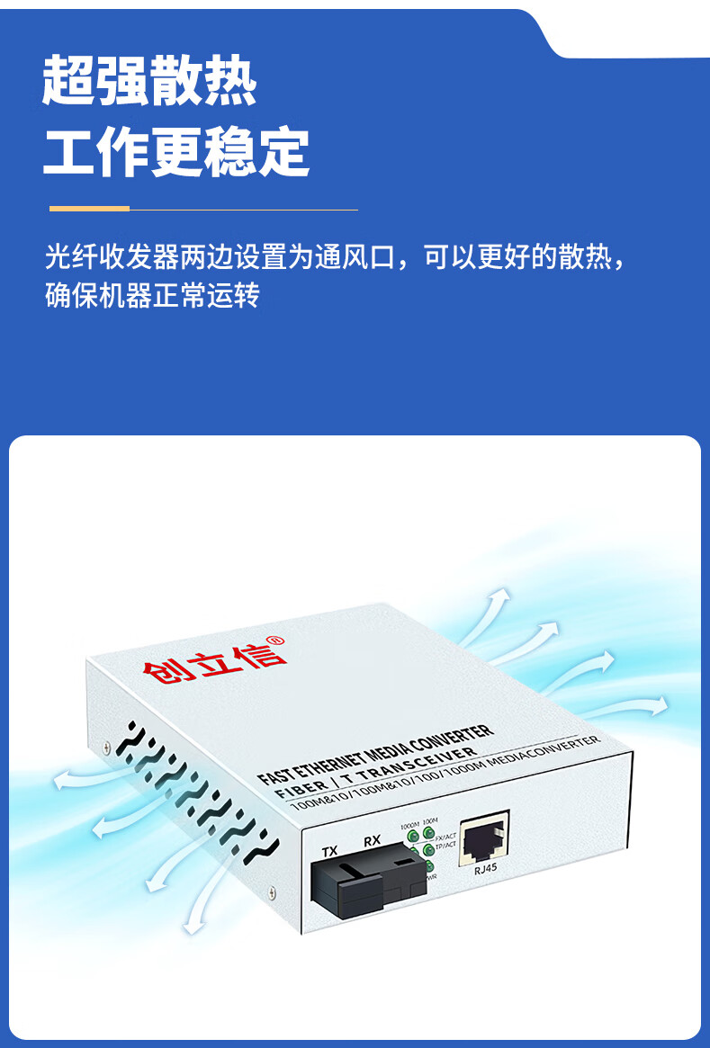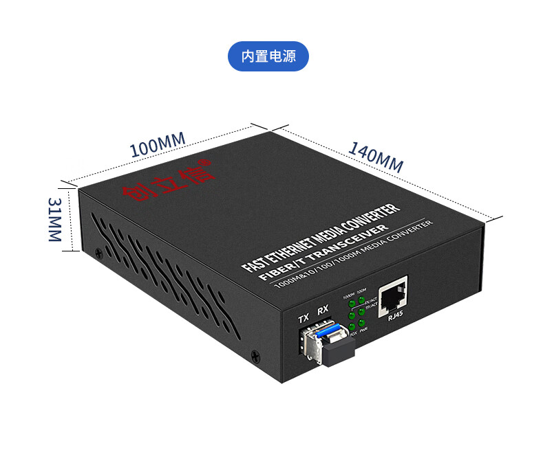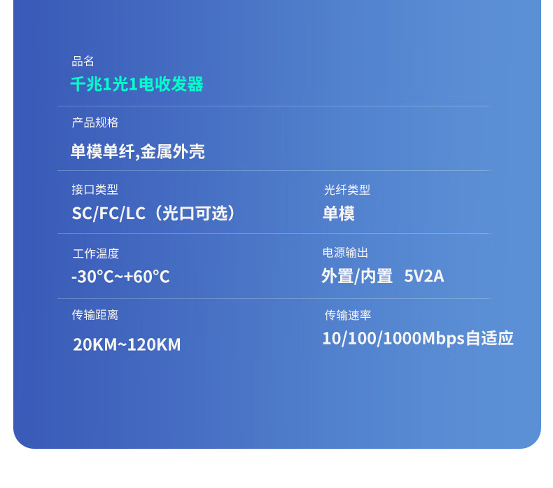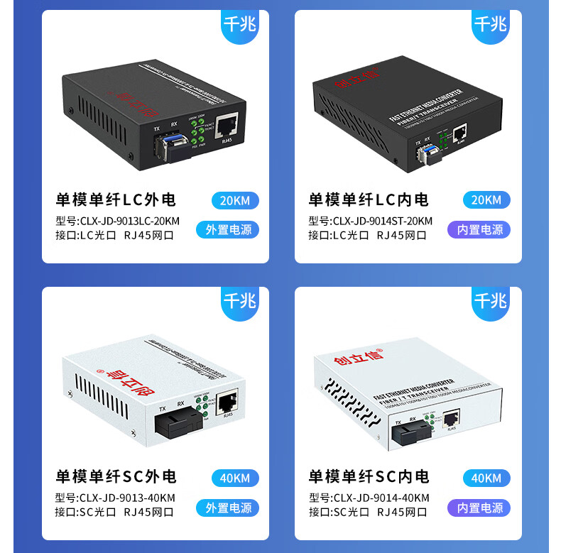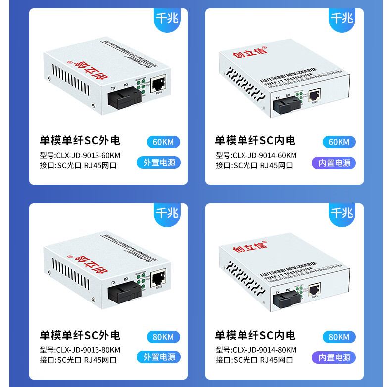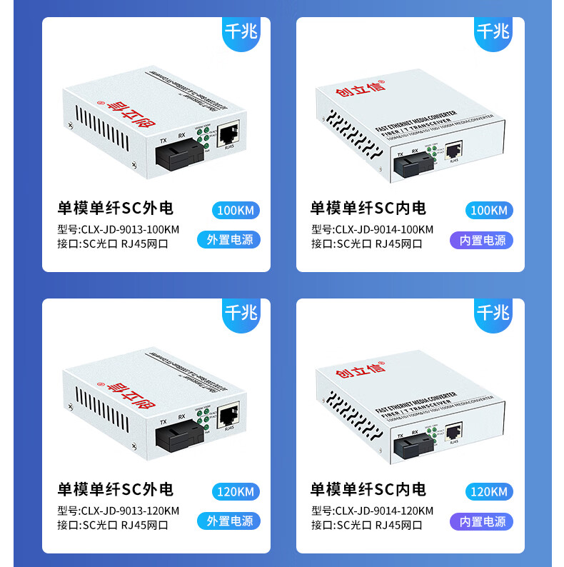 创立信 光纤收发器 光电转换器 网络光端机 千兆1光1电单模单纤SC外电120KM 1台