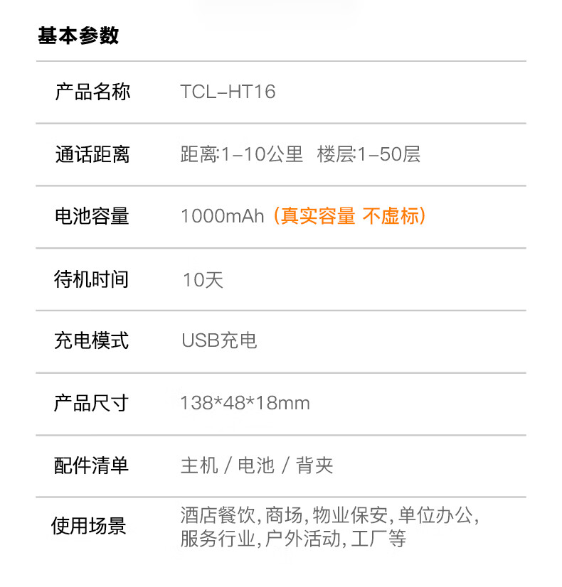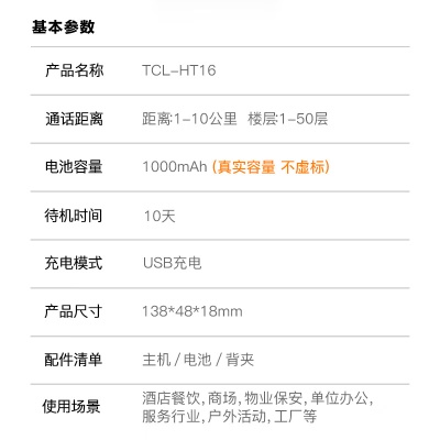 TCL【双台装】HT16对讲机远距离 专业民用大功率