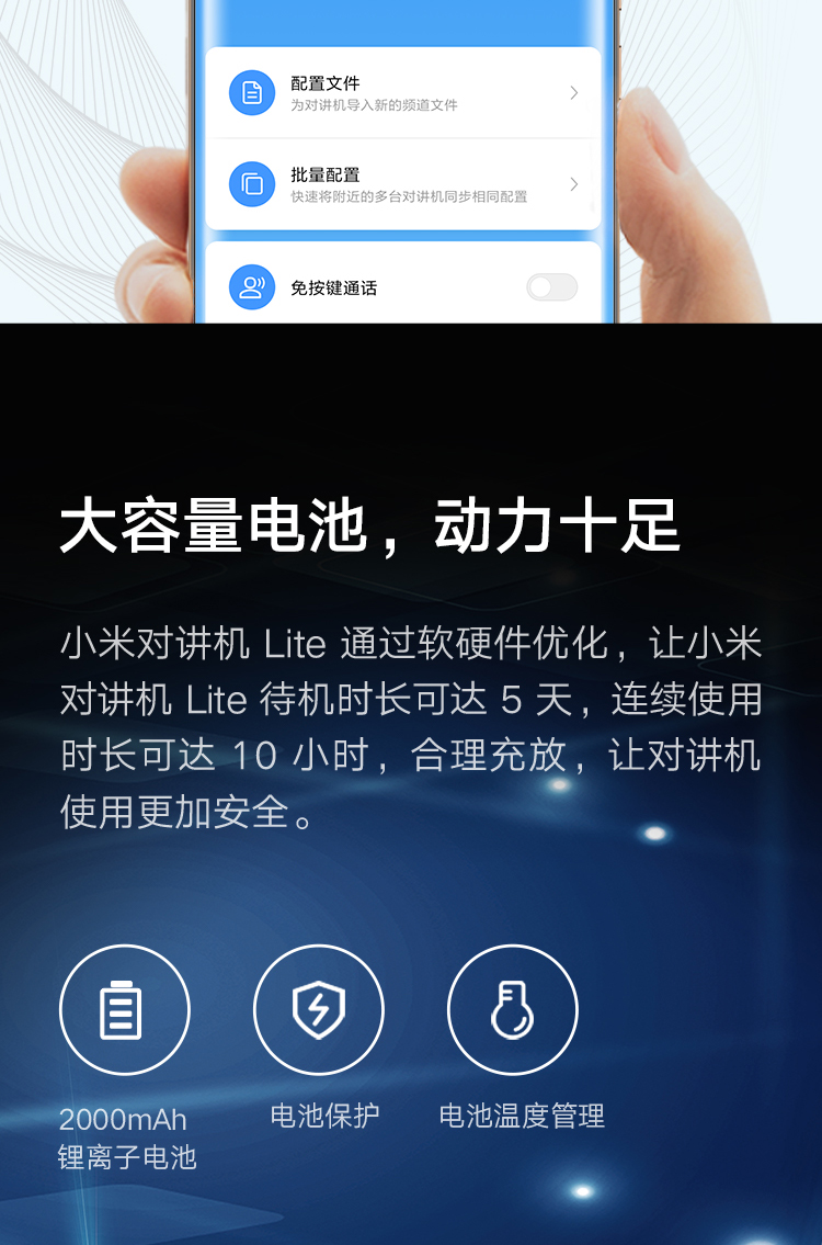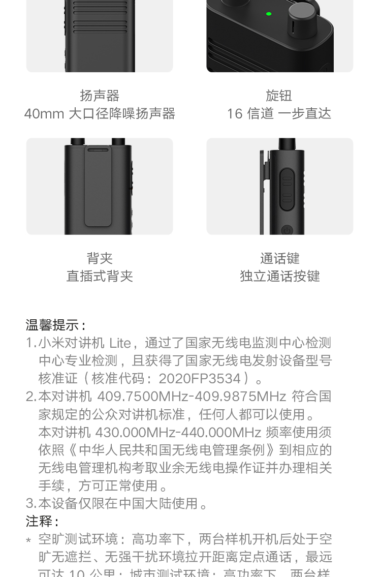 小米 MI 小米对讲机Lite 黑色 超轻 超薄 APP写频 超长待机