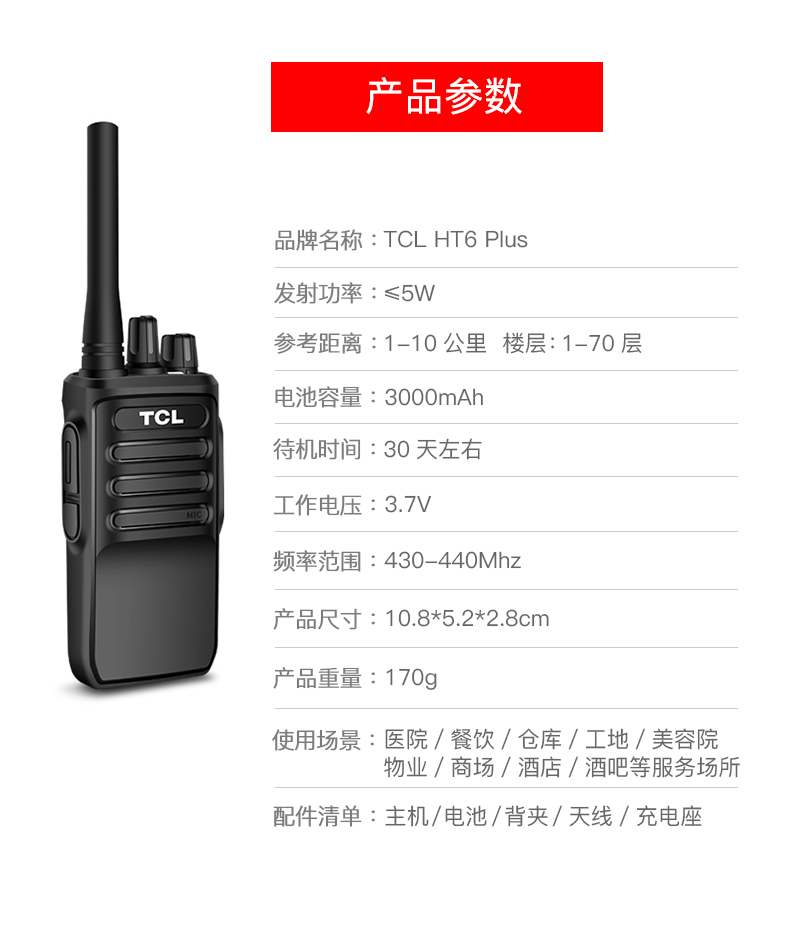 TCL【双台装】对讲机HT6 plus 超长待机
