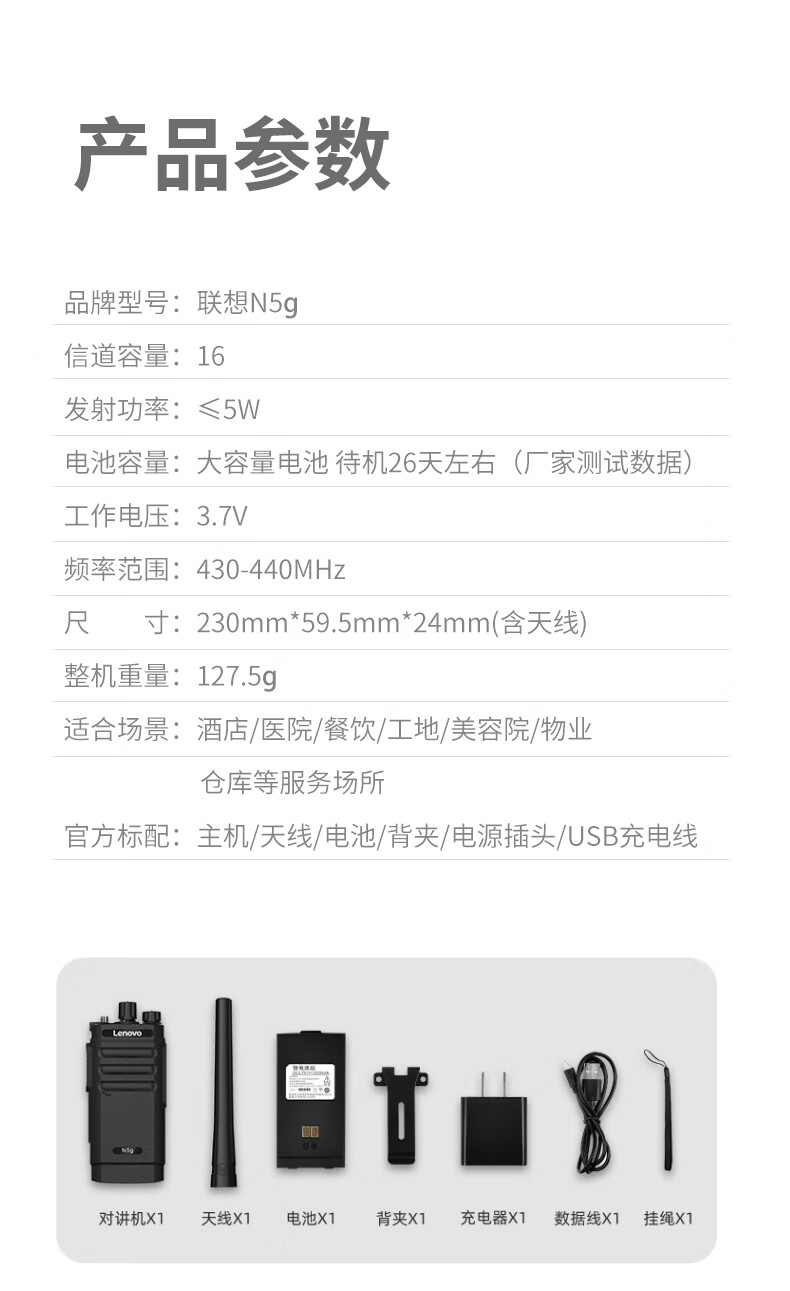 联想(Lenovo)N5g【双台装】对讲机 超长待机