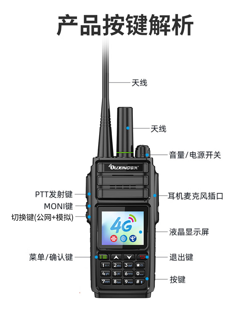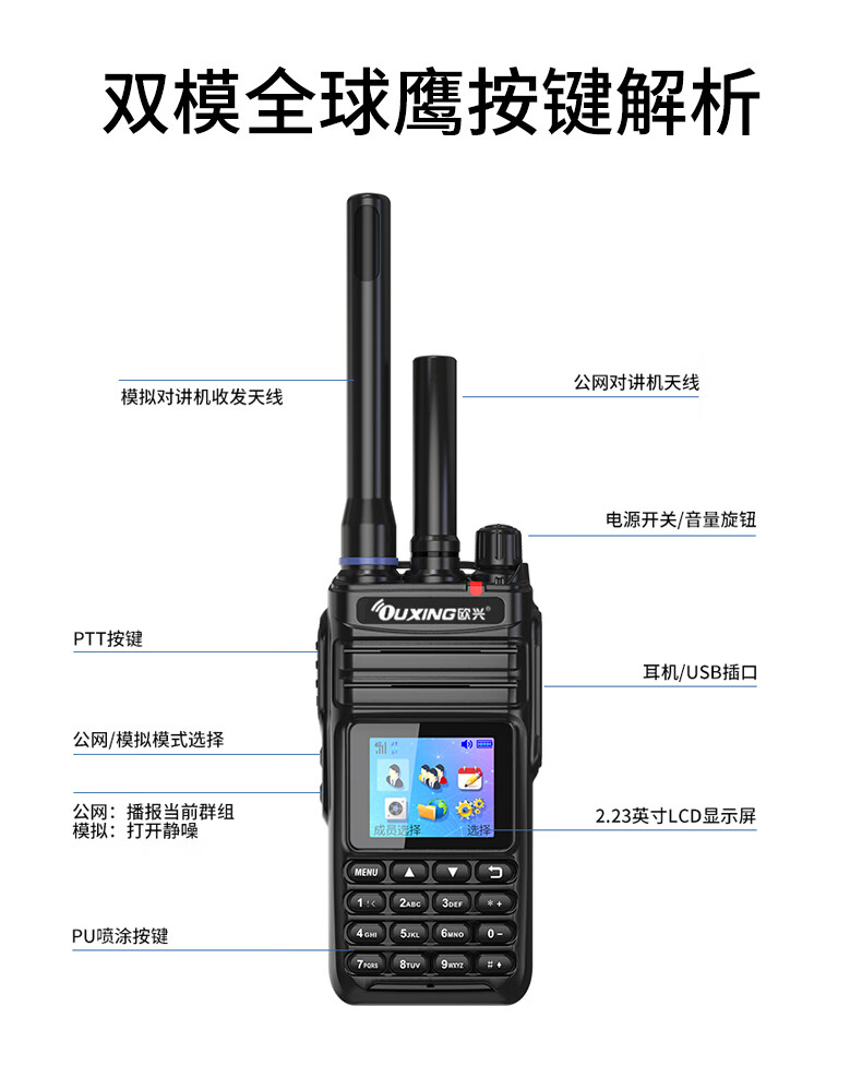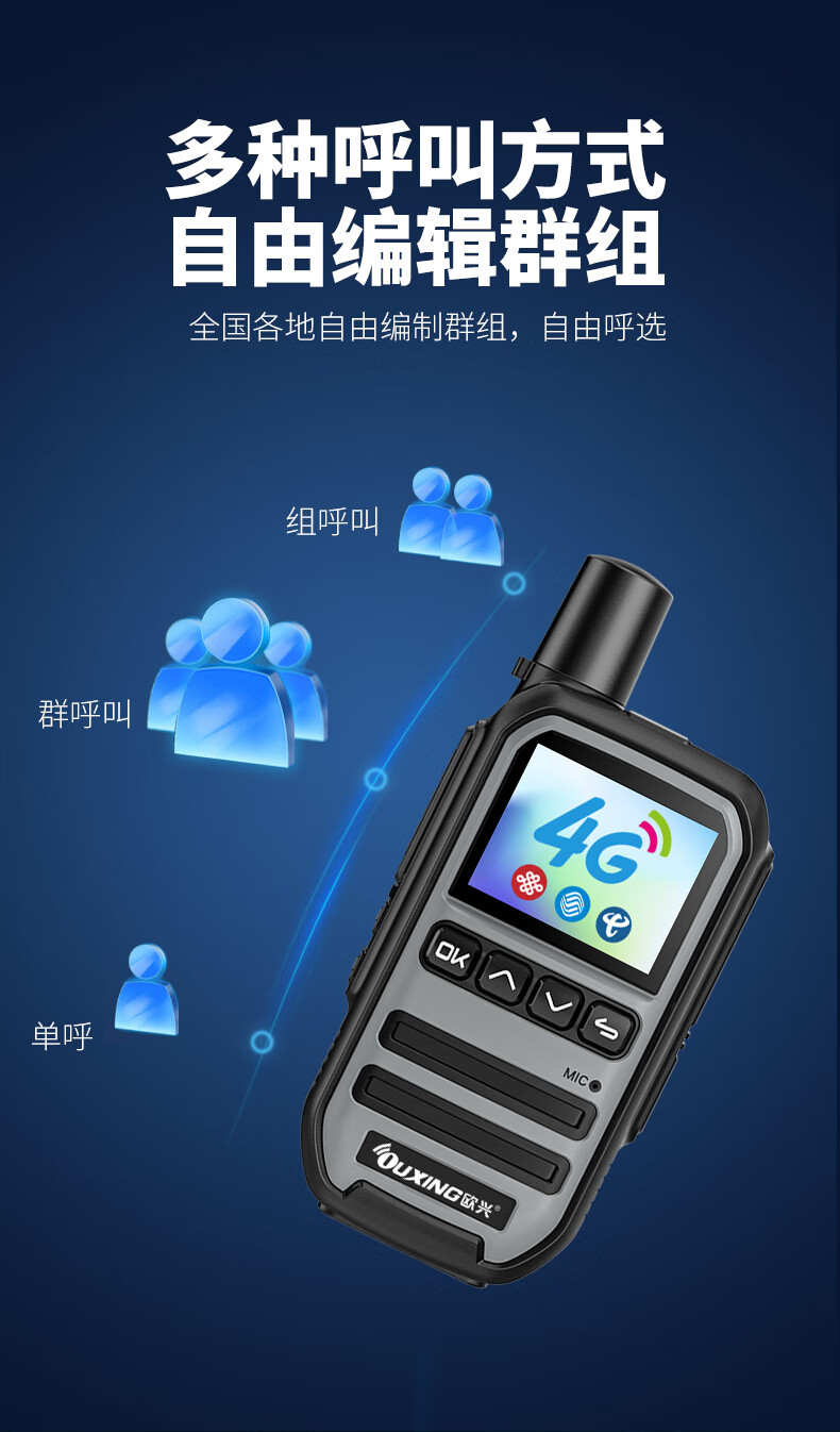 欧兴(OUXING)【双台装】对讲机全国通5000公里不限距离 4G公网对讲机插卡