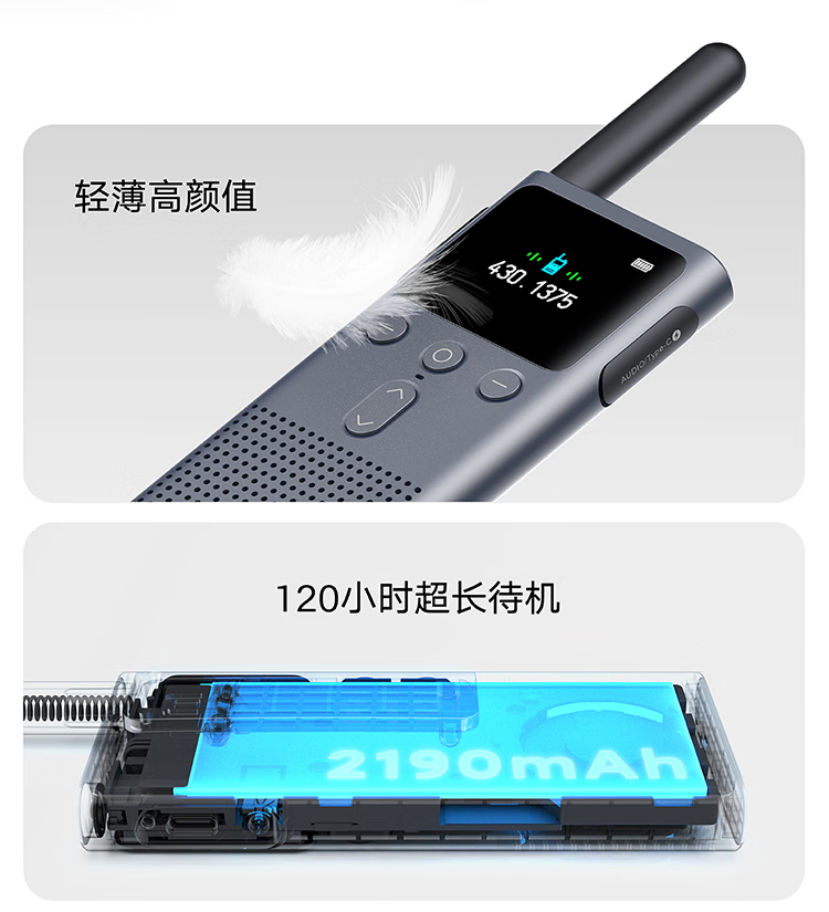 小米 MI 小米对讲机Lite 黑色 超轻 超薄 APP写频 超长待机
