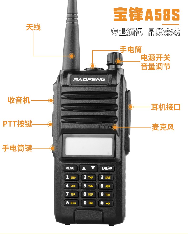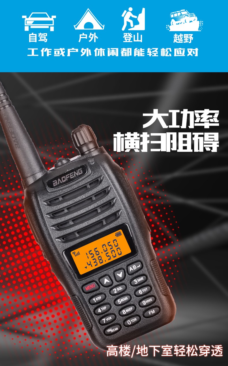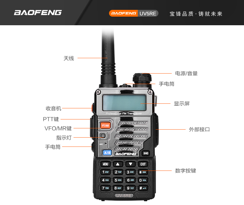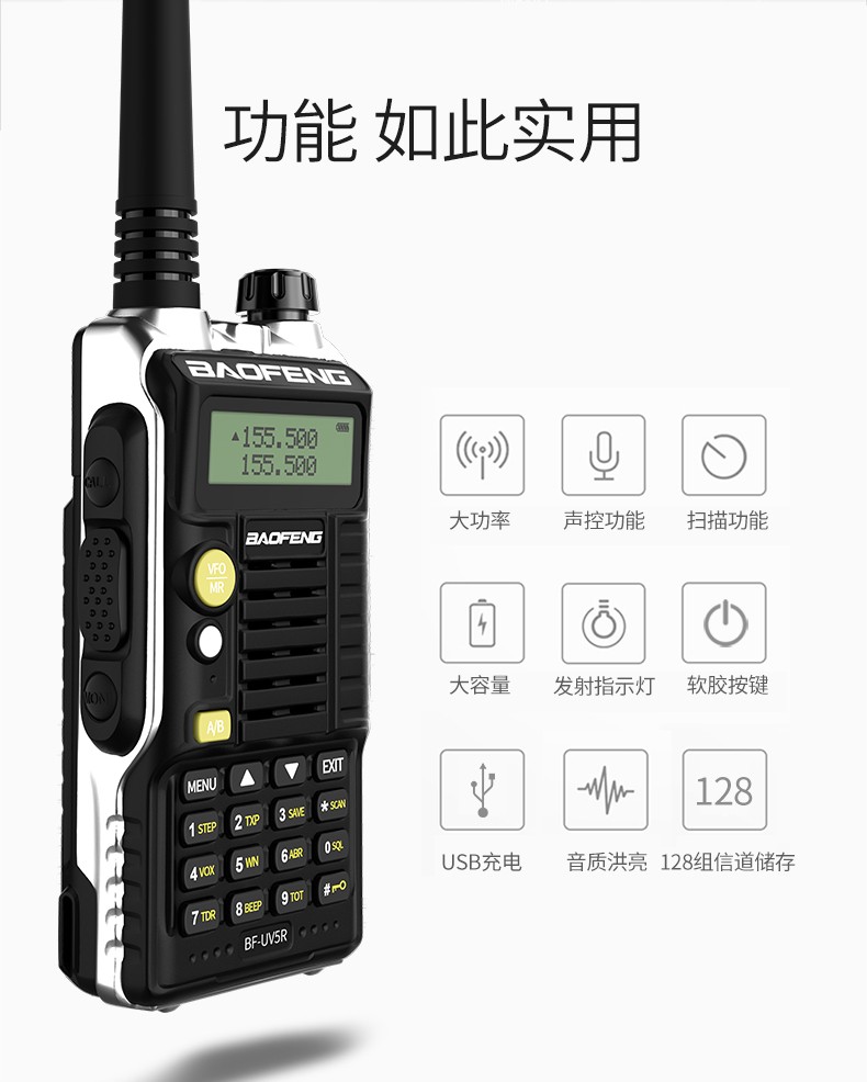 宝锋(BAOFENG) UV-5R手动调频双频双段对讲机自驾游登山户外旅行支持SUB直充 可开专票