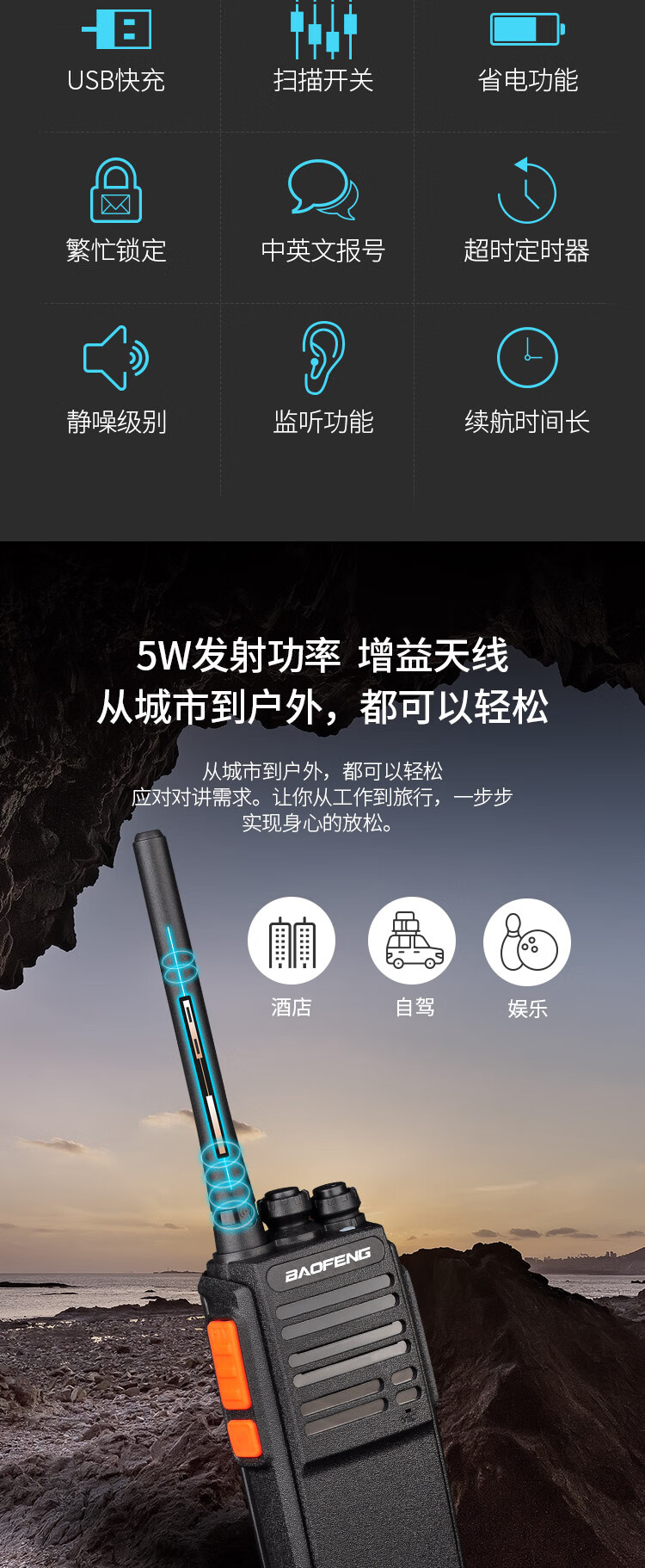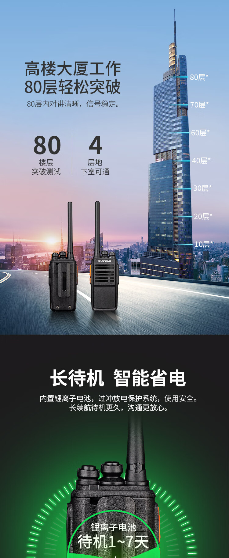 宝锋(BAOFENG)宝锋对讲机超长待机大功率专业商用民用1-50公里办公工地餐饮户外迷你对讲机