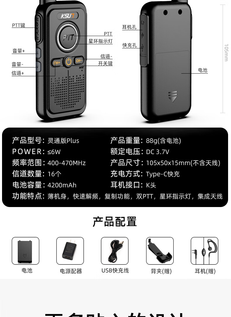 步讯(KSUN TFSI)对讲机一键匹配 呼吸指示灯 万能破码测频远距离大功率解码王加密手台小型手持机