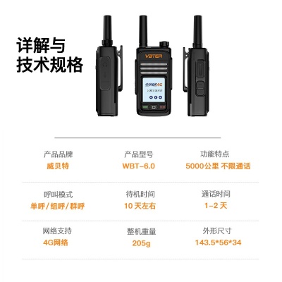 威贝特 WBT-6.0 对讲机公网5000公里 4G全国通 不限距离
