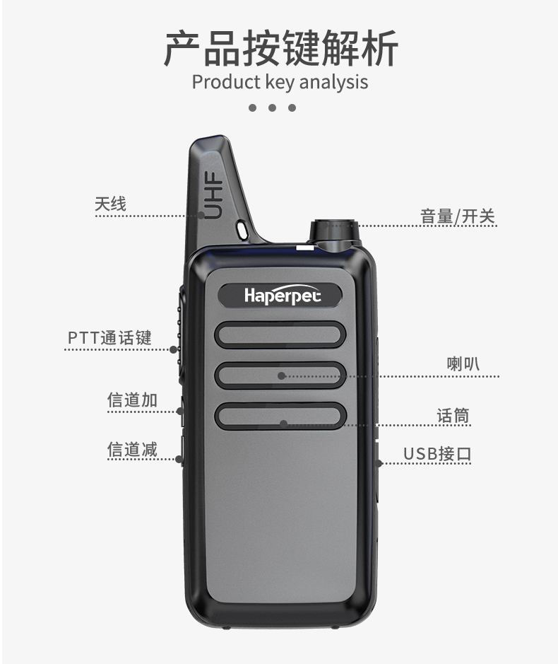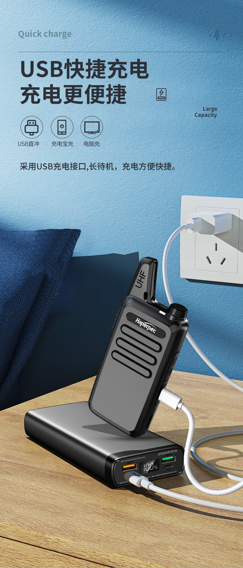柘恒(haperpet)迷你对讲机小型户外民用酒店餐厅商用大功率远距离USB充电儿童专业无线手台