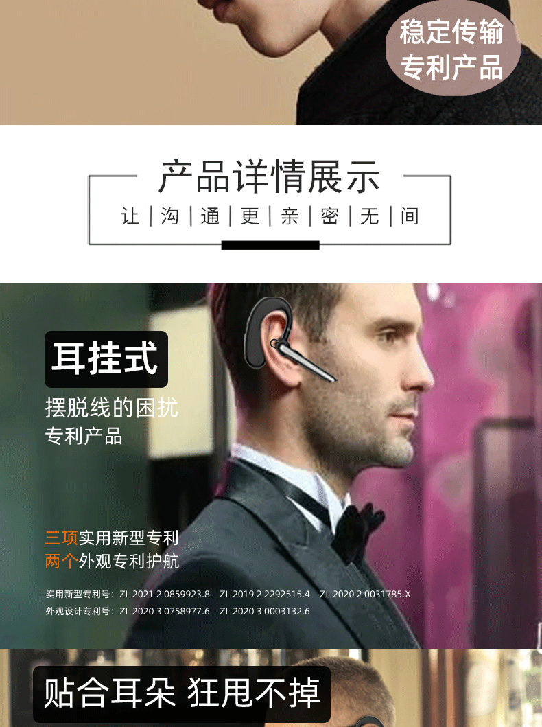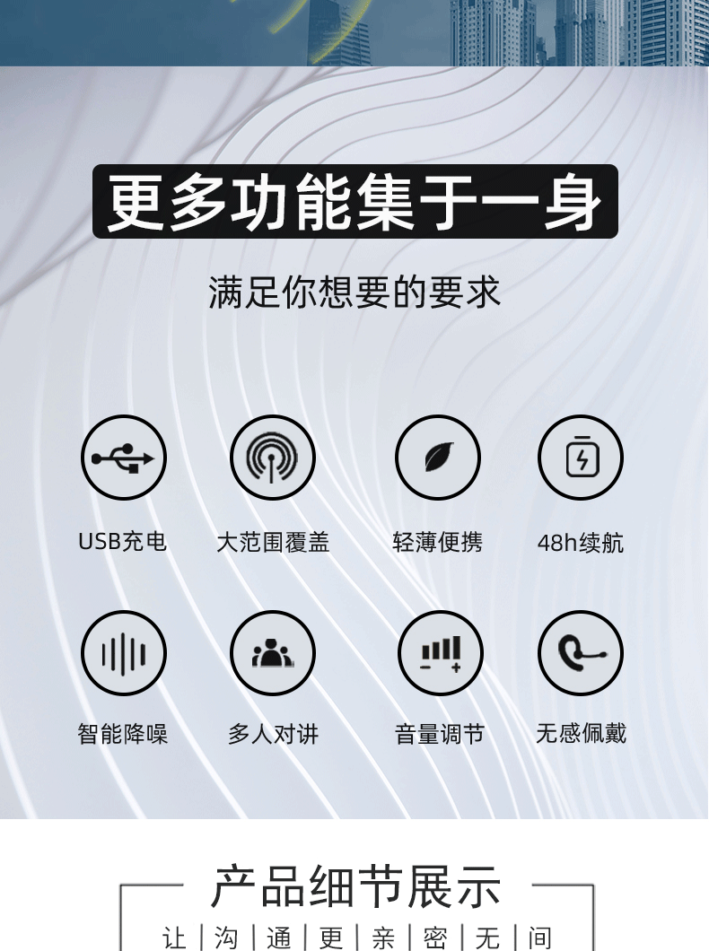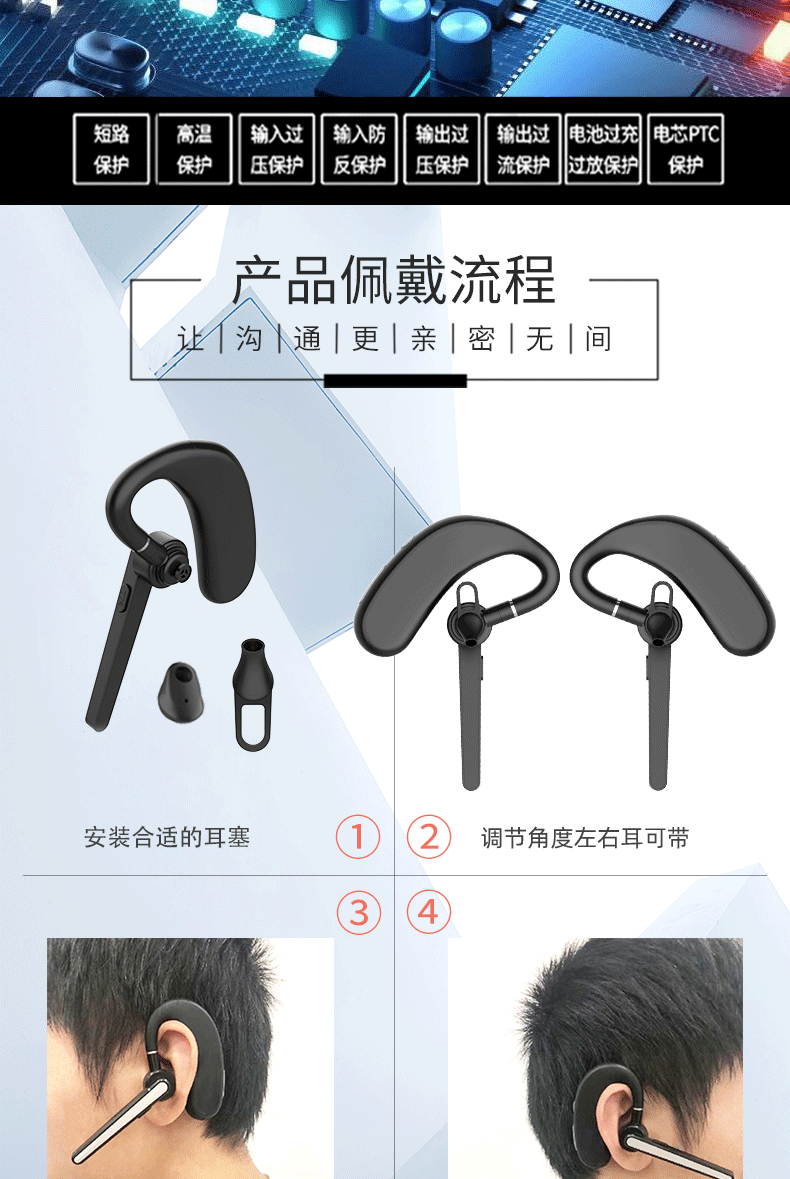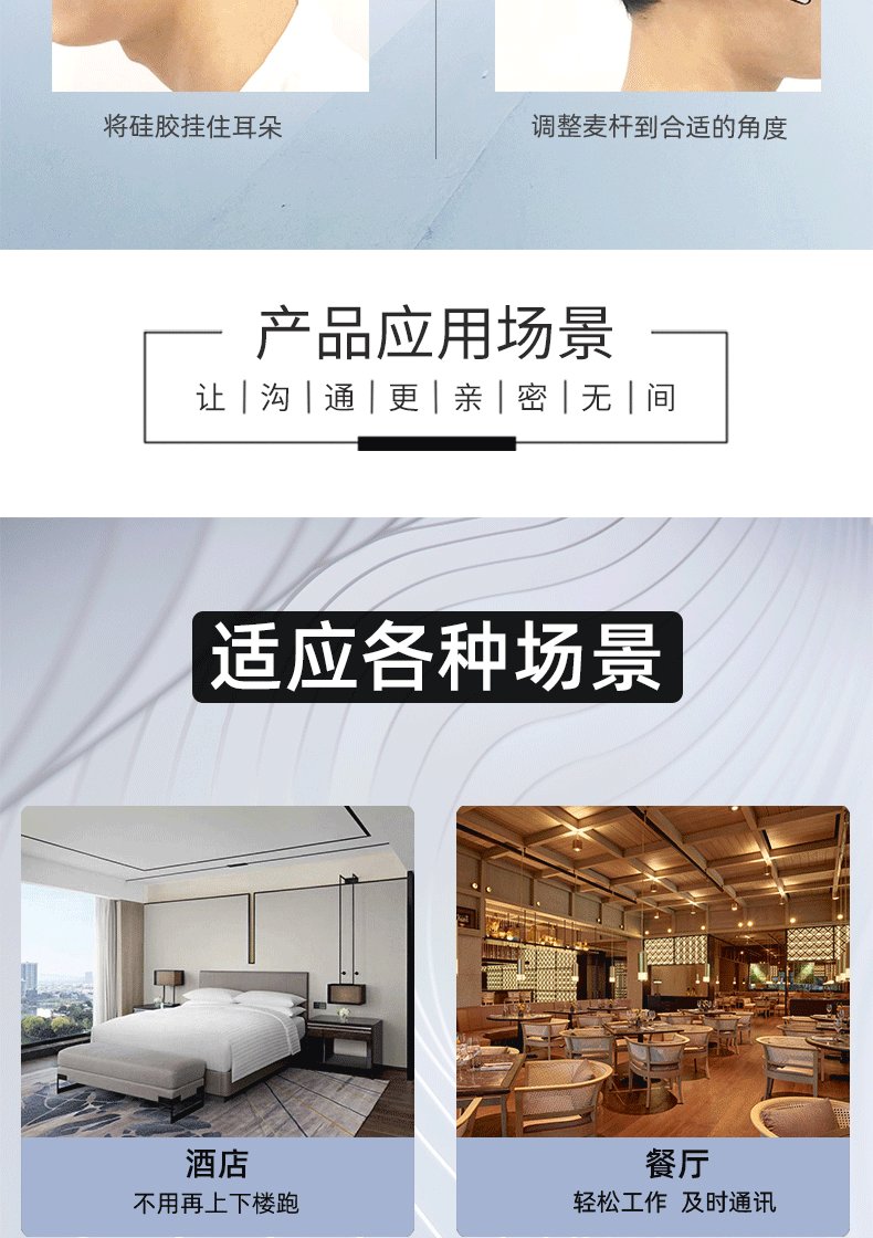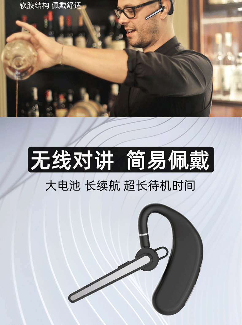 SINORISE对讲机小型迷你无线对讲机饭店KTV室内耳挂式蓝牙对讲美容院酒店餐厅商用户外服务业通用SR-615黑