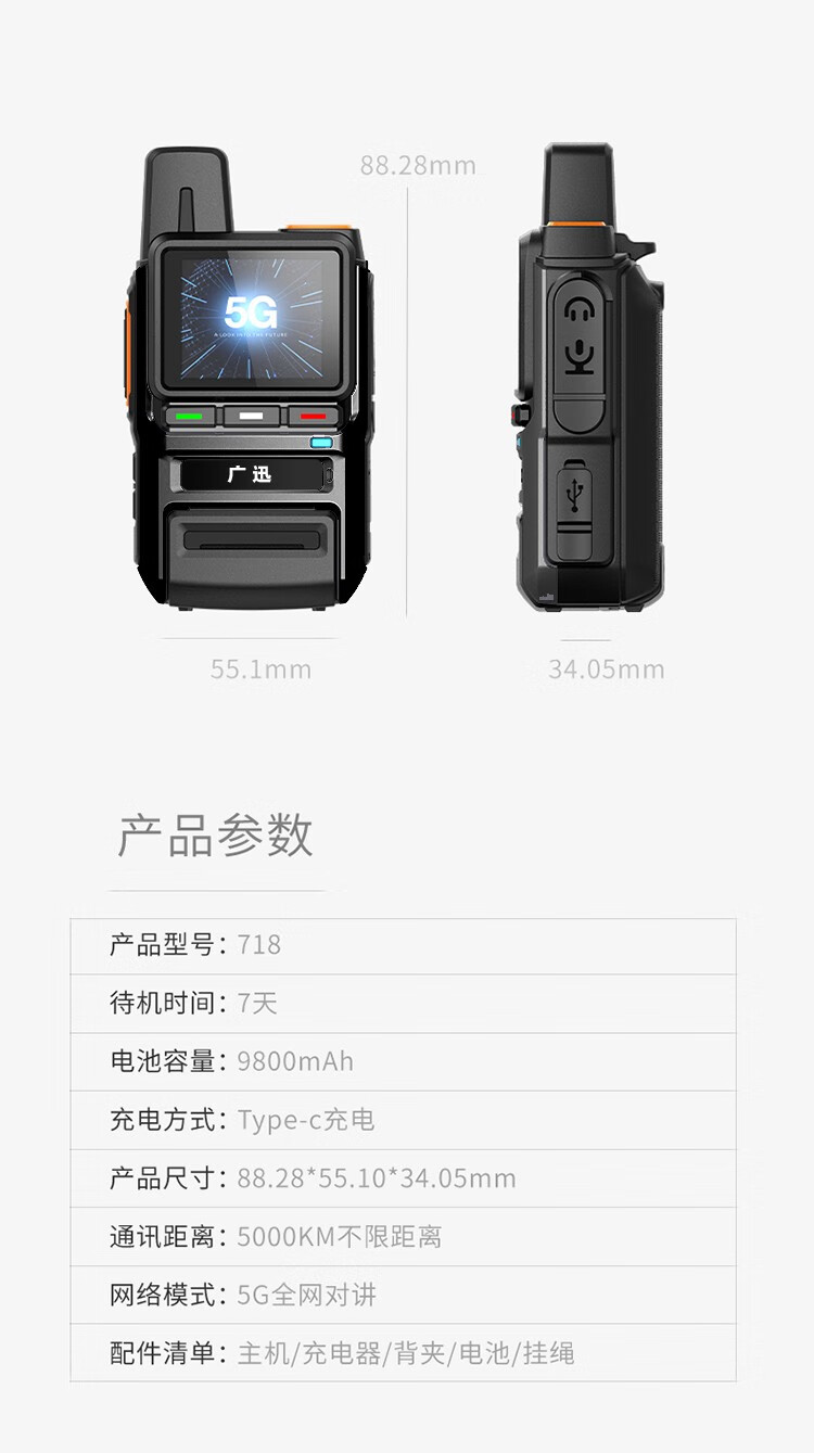 广迅 对讲机5G全国通插卡公网手持户外对机讲车队物流远距离5000公里全网通小型4G超长待机工地酒店 全网通5G-718