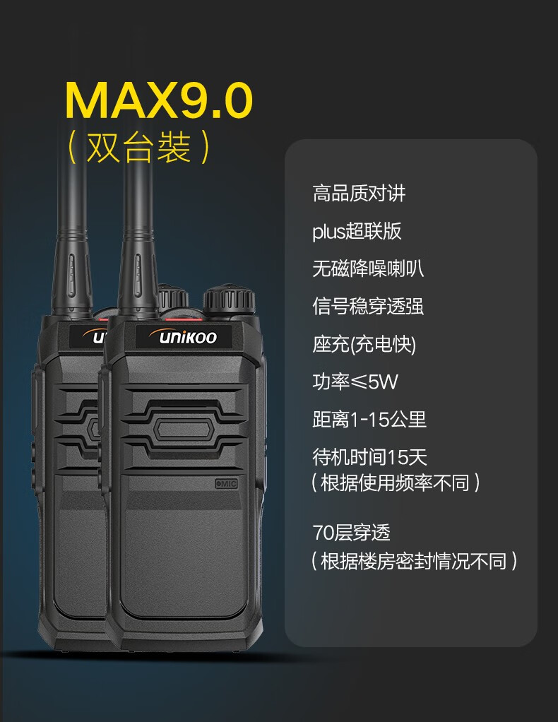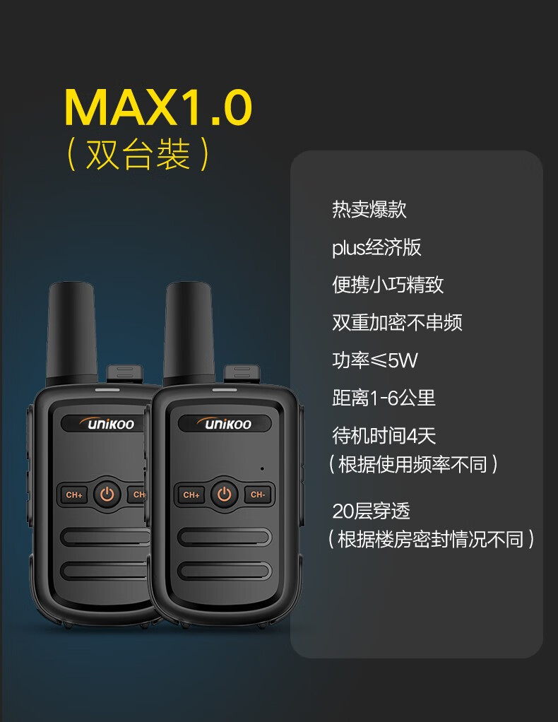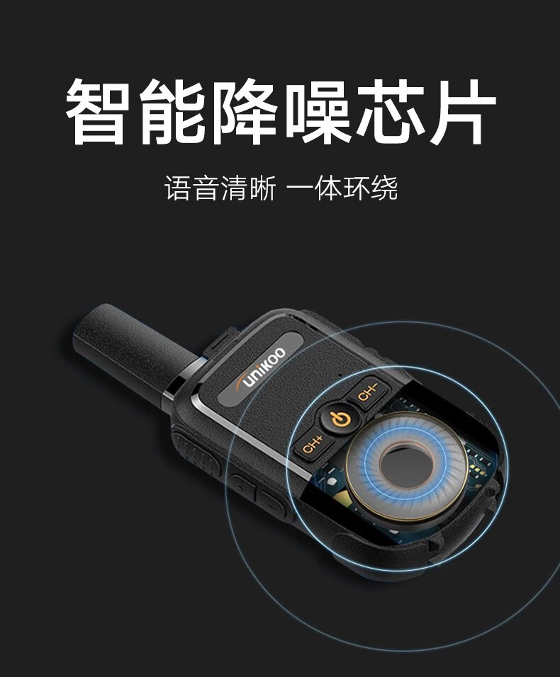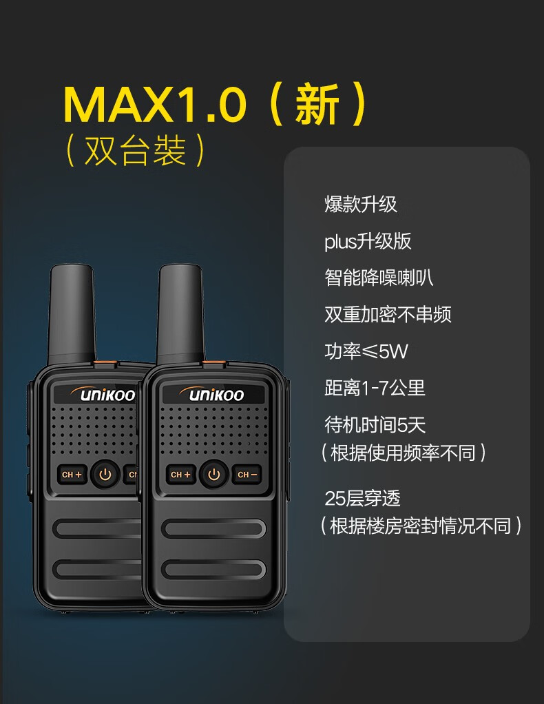 UNIKOO【双台装】对讲机 远距离 工地办公酒店安保餐饮户外大功率对讲机儿童迷你民用手台