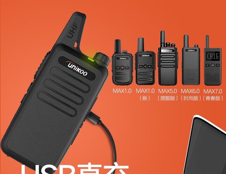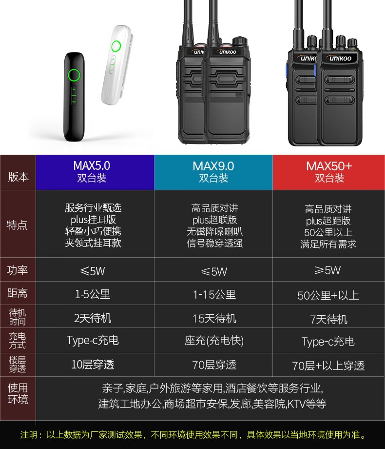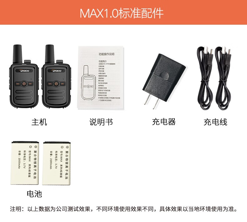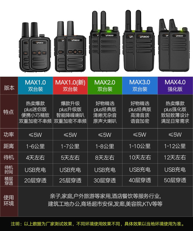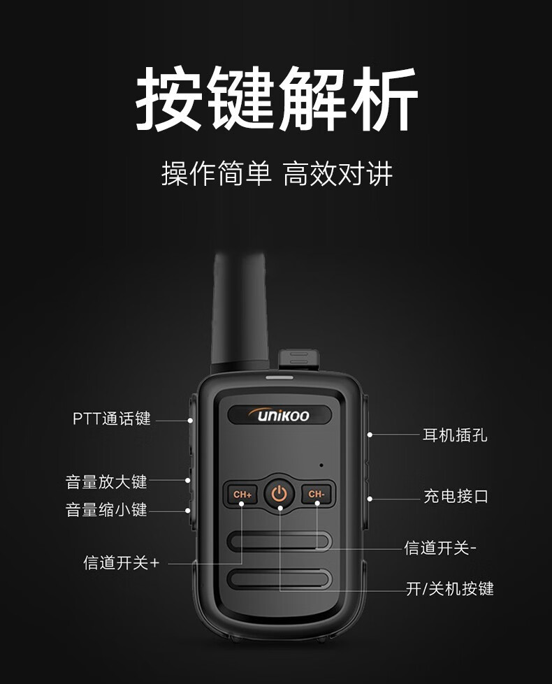 UNIKOO【双台装】对讲机 远距离 工地办公酒店安保餐饮户外大功率对讲机儿童迷你民用手台