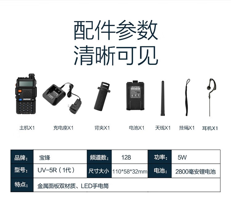 宝锋(BAOFENG) UV5R对讲机商用民用手台双频双段自驾游户外无线对讲