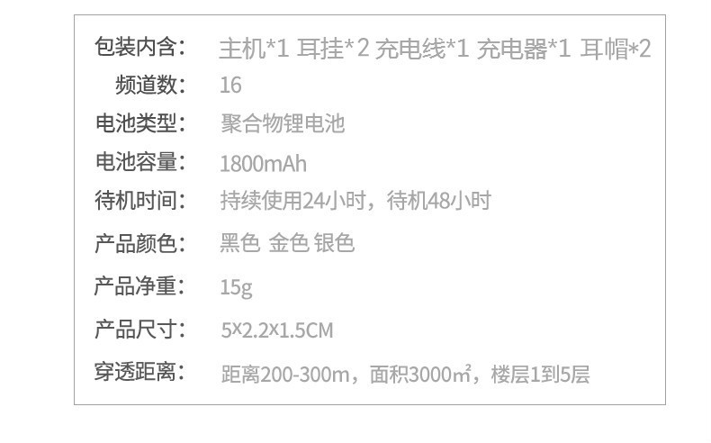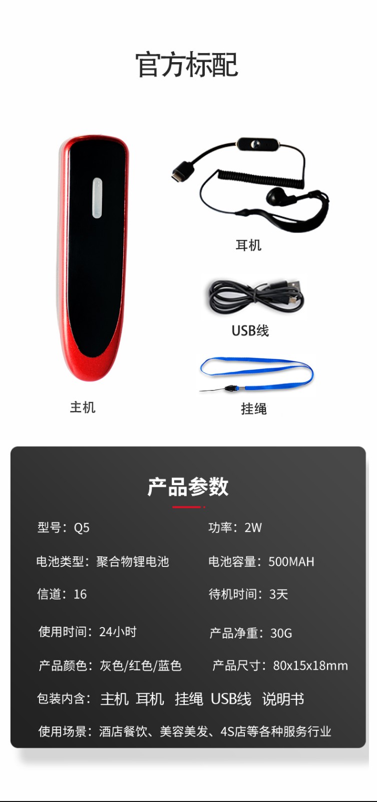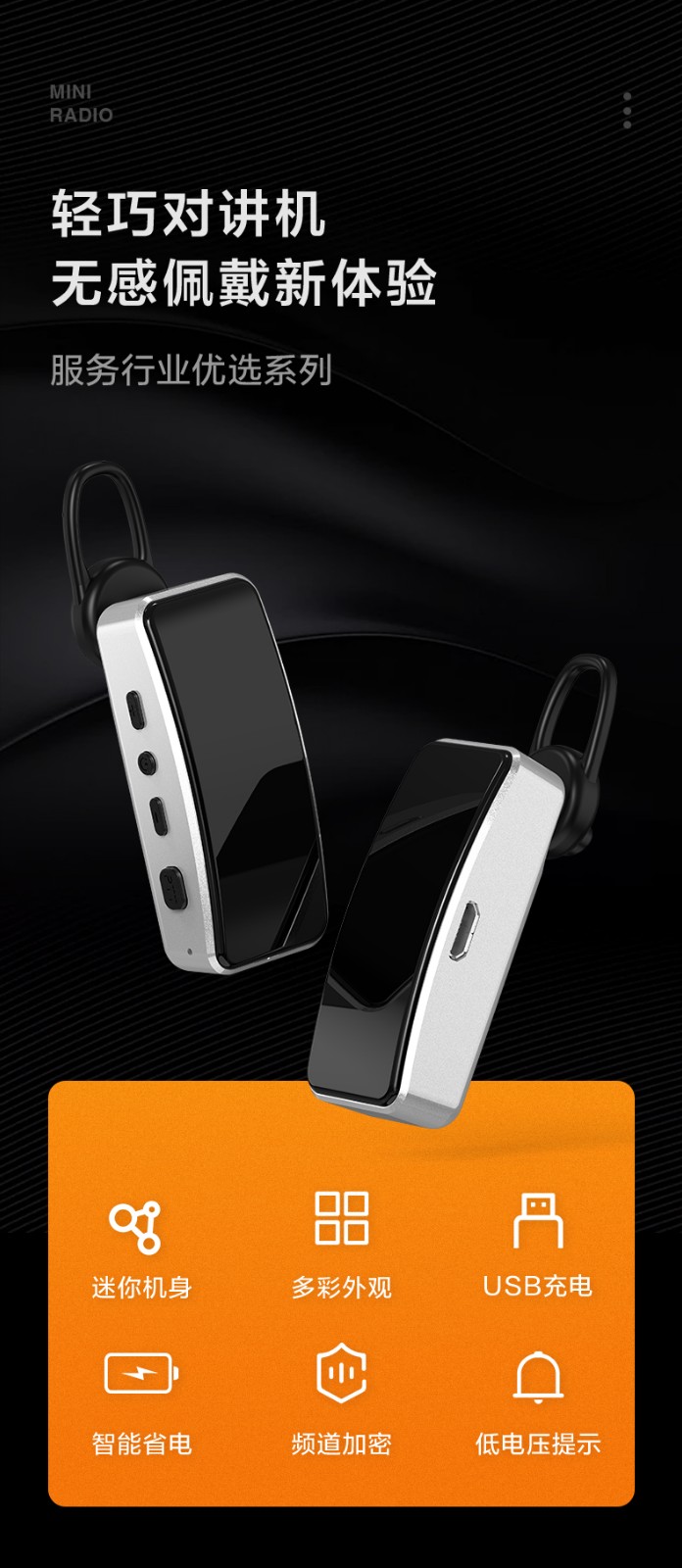VISRIG 对讲机迷你轻薄微型小步话机无线电手台餐厅发廊蓝牙对讲机耳机耳挂式对讲器小机小型