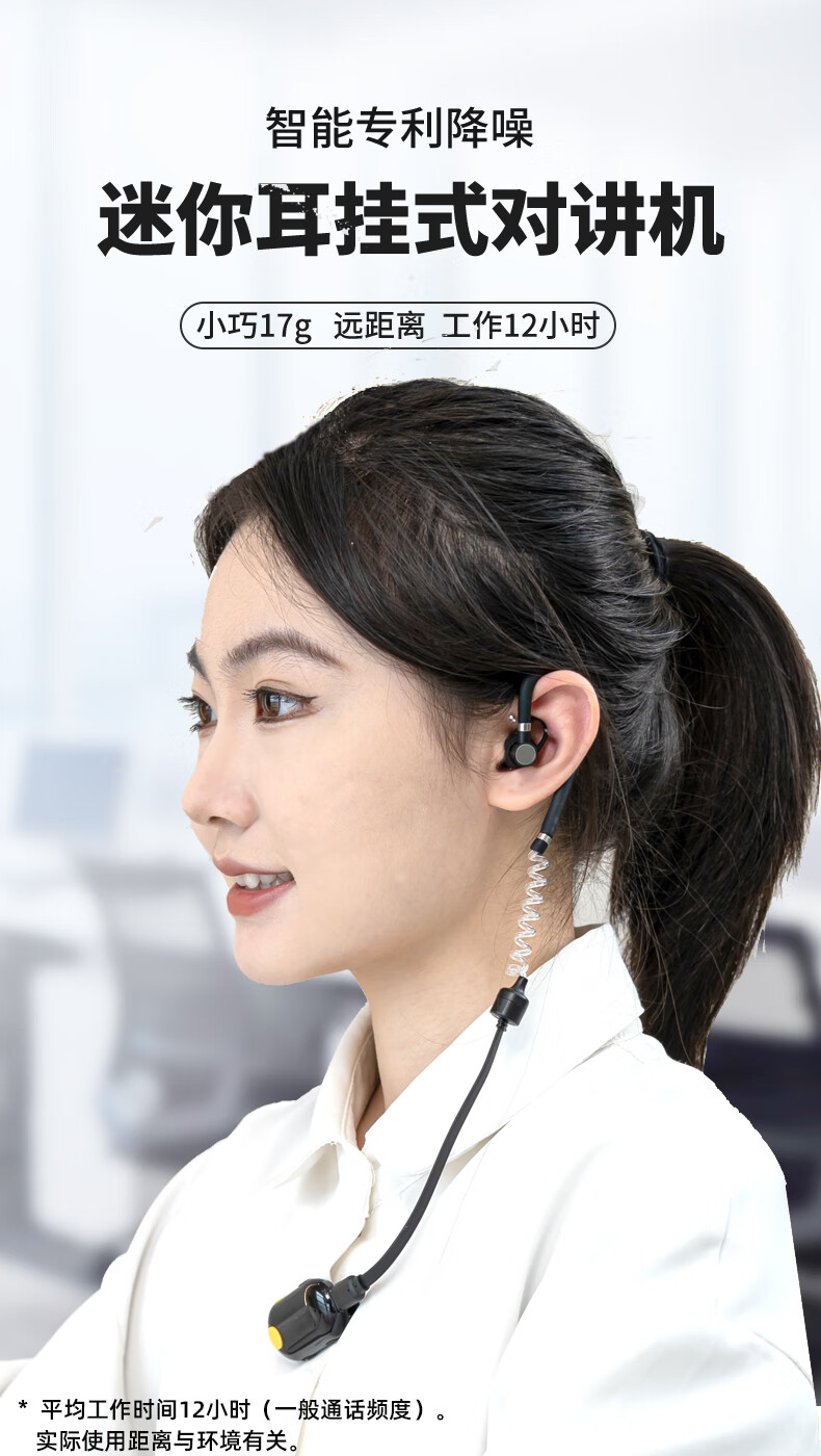SINORISE对讲机小型迷你耳挂式对讲机饭店KTV室内无线蓝牙对讲美容院酒店餐厅商用户外服务业通用SR610旗舰版