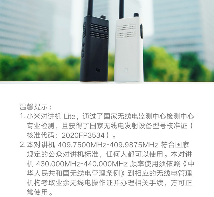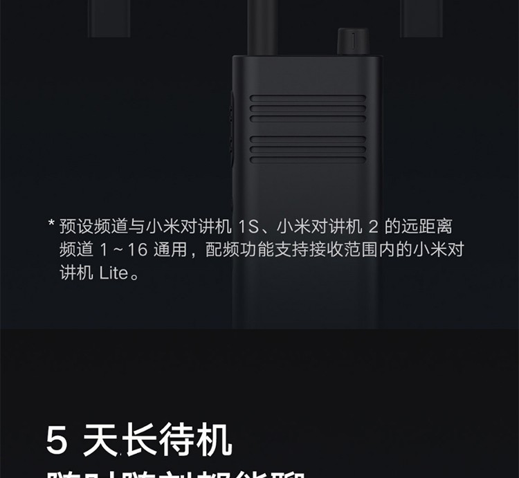 小米(MI) 小米对讲机Lite 多频户外远程大功率对讲机 户外酒店自驾游民用手台 便捷无线对讲机 小米对讲机Lite-黑色