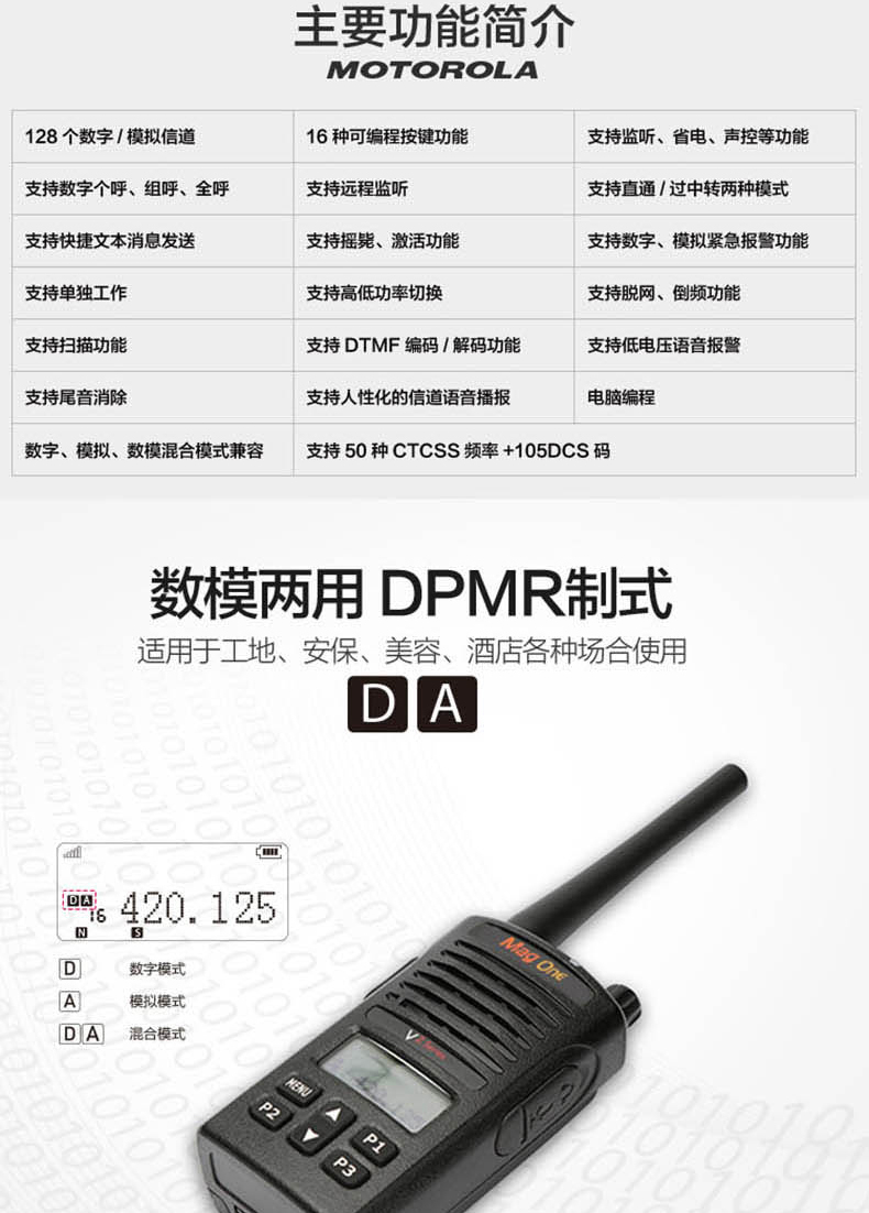 摩托罗拉(Motorola)Mag One VZ-D135 数字对讲机 数模两用带显示屏