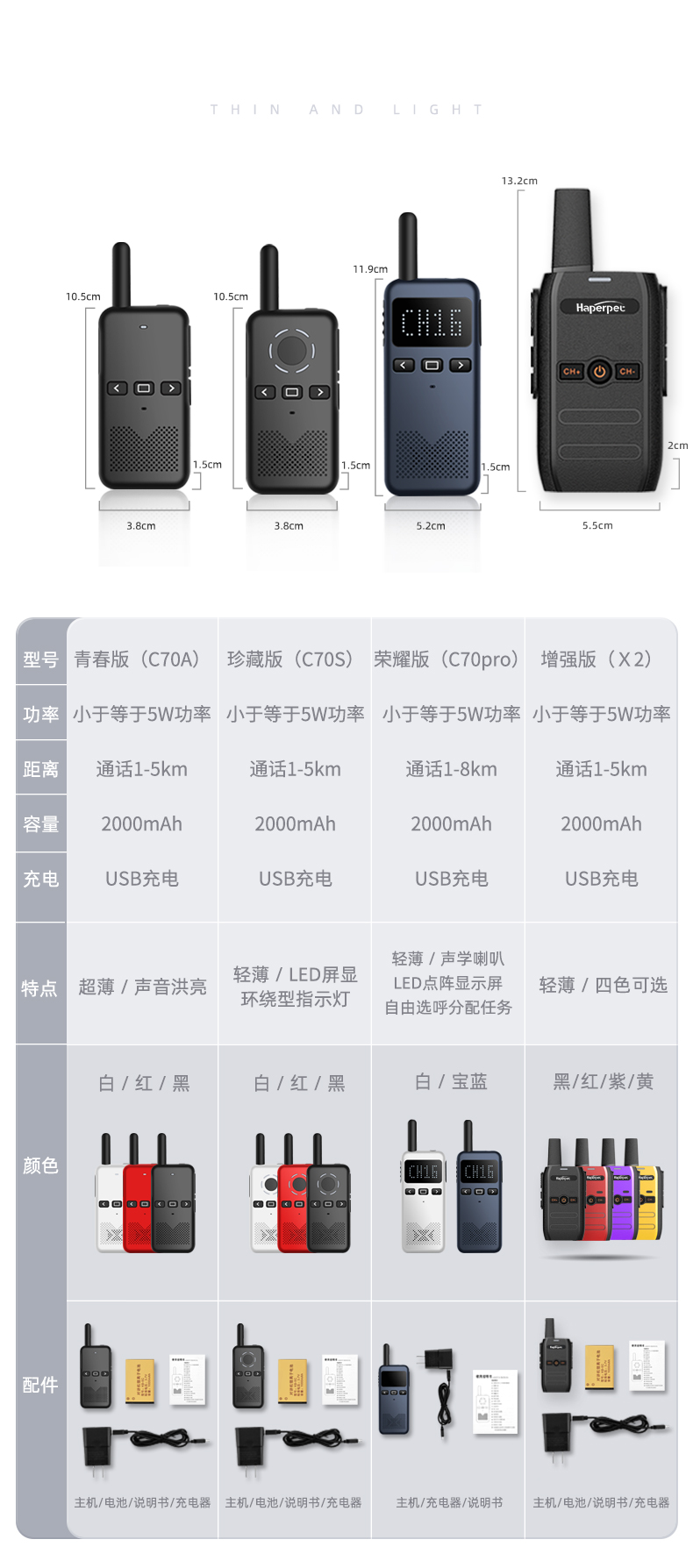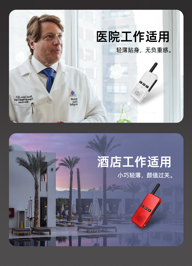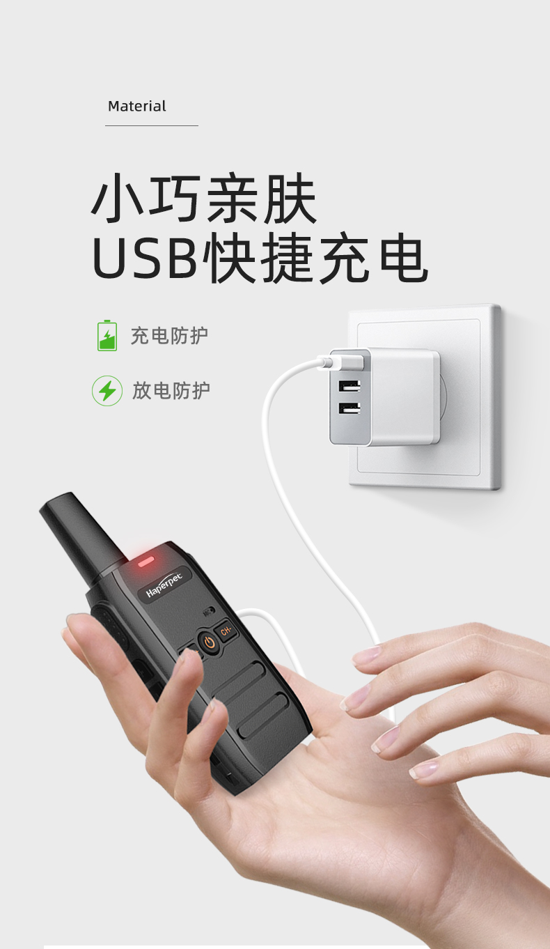 柘恒(haperpet) (两只装)迷你便携对讲机USB快充电小型民用商用轻薄迷你对讲机专业无线手台