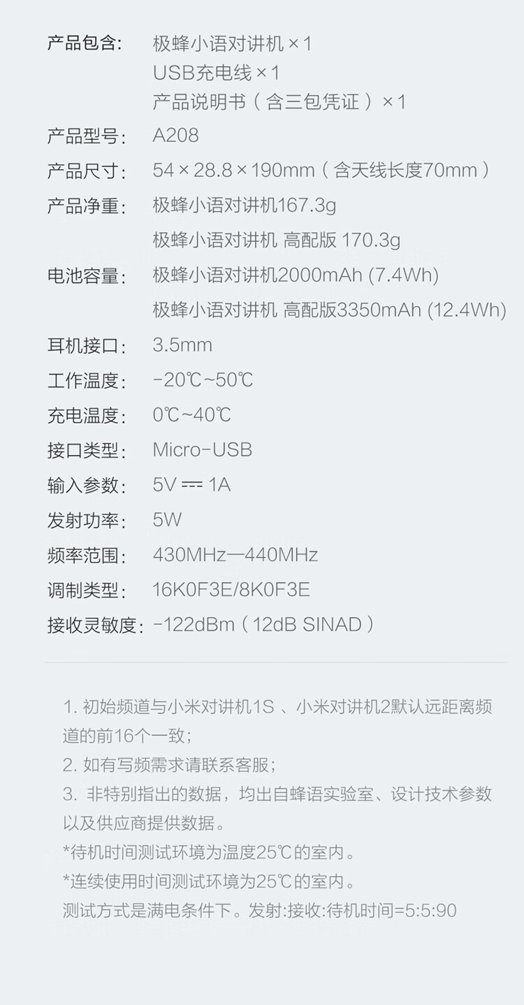极蜂BeeBest罗永浩推荐小语模拟对讲机A208户外车载大