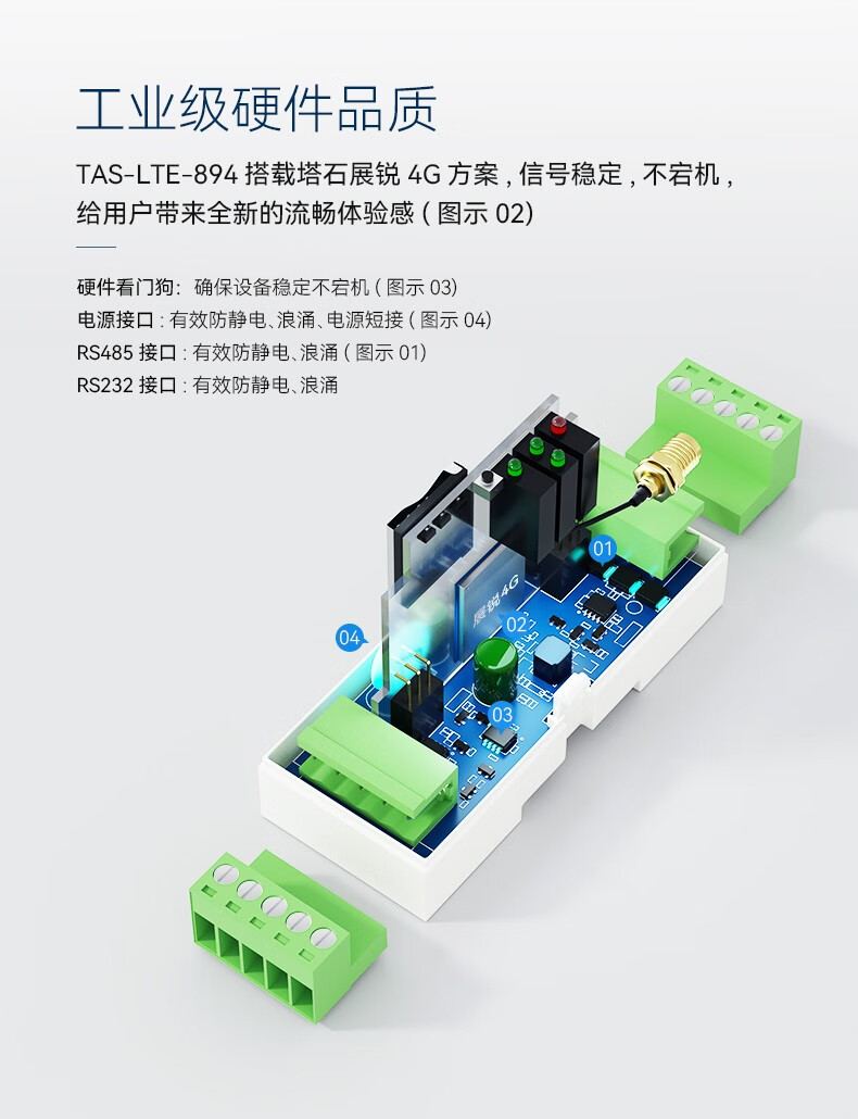 有人4Gdtu模块Cat1导轨式无线透传RS485串口232