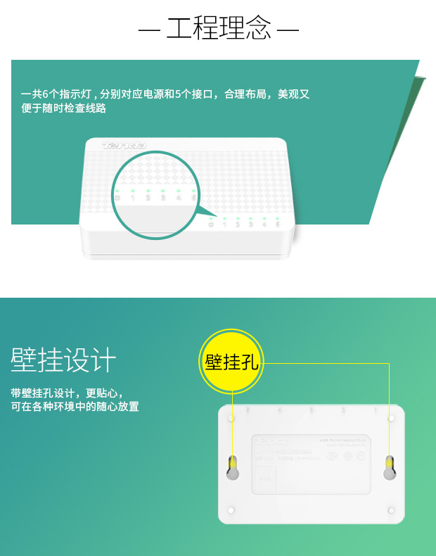 腾达(Tenda)S1055口百兆交换机4口家用宿舍交换器监