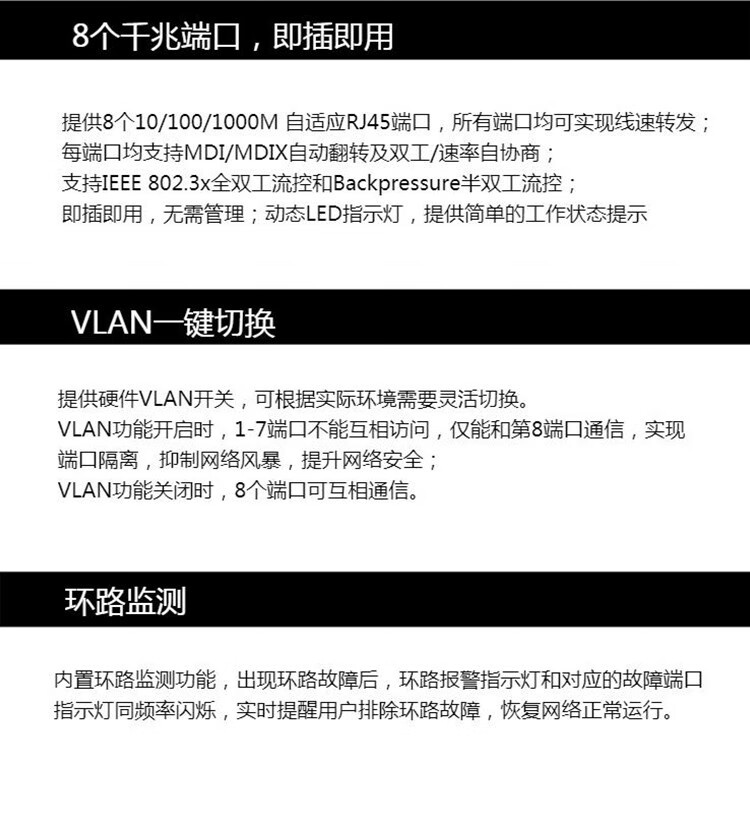 新华三(H3C)8口千兆交换机企业级交换器网络网线分线器分流
